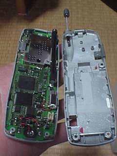 授業でPHSについての説明を10分の発表にまとめてやりました。 そのときに使ったPHS電話機内部の写真です。 自分が前に使っていた機種を分解してみました。長いのがホイップアンテナ、 銀色の部分が板状逆Fアンテナで、二つのアンテナをつかってより良い感度に なるようにしています。ちなみに解体する時には普通のドライバーでは、 あけることは出来ません。星型ドライバという特殊なのであけます。東急 ハンズでわざわざ買っちゃいました。 |