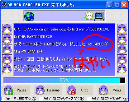 の速度が出ているかをみるために、プリンタのドライバをダウンロードしてみま