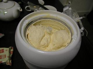 友人を家に招待して食事会を開きました。横浜やら品川からはるばる来てくれて 楽しいお昼になりました。今回は結婚式の時に頂いたアイスクリームメーカーを 初使用しました。うまくできるか心配だったけど、予想以上にデリシャスなアイス クリームができてびっくりです。アイスは生クリームと砂糖、卵黄の三種類だけで 簡単にできてしまいます。結構お手軽なので時々作ってみたいです。 |