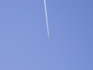 先週の休日は、今日とは違って、澄み渡った青空でした。雲一つない天空に、きれいな飛行機雲。