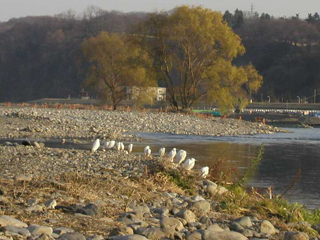 休日に多摩川にサイクリングで行って来ました。川辺にはサギがたたずんでいました。