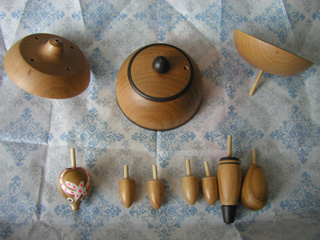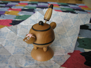 2004/10/16九州土産に頂いた分福茶釜です。体が10個のこまになって回せます。 子供が大きくなったら回すことでしょう。 |
