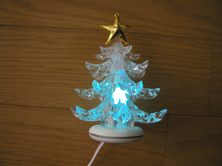 2004/11/11父から光る小さなクリスマスツリーをもらいました。パソコンのUSB端子に 接続することで電源が供給され、水色、ピンク、紫、白、赤、緑、青、黄色と 順に色が変わっていきます。パソコン雑誌とかで話題になっていましたが、 実際に手に取るのは初めてです。 |