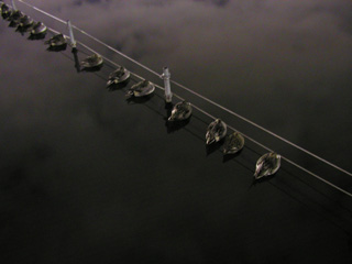 夜12時過ぎの井の頭公園では、鴨が等間隔に一列で並んでます〜。 寒くなってきましたね。