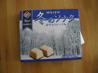 2005/08/20(土)友人から韓国土産のチョコレートをもらいました。 美味しかったです。 そういえば、国際学会会場のホテルロビーにもヨン様関連観光マップが あったりしてました。 |