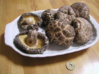 2006/03/05(日)「大つぶし」 とても大きな椎茸です。椎茸はコレステロールを下げる働きがあるらしいです。 岩手県さんの立派な椎茸をネット経由で買ってみました。 大つぶしとかいう種類で、味もピカイチらしいです。もともと僕は 椎茸は苦手でしたが、食べられそうです。 |