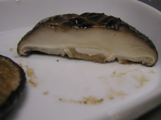 2006/03/05(日)「厚いです」 椎茸ステーキの断面です。肉厚です。塩をちょこっとつけて食べました。 うまいっす。 |