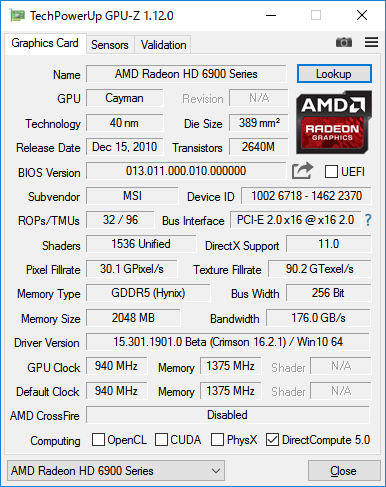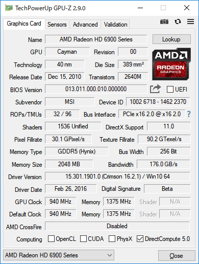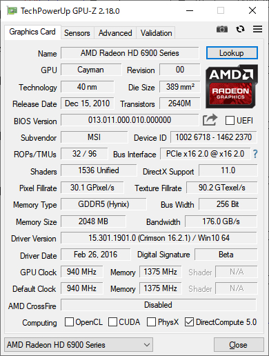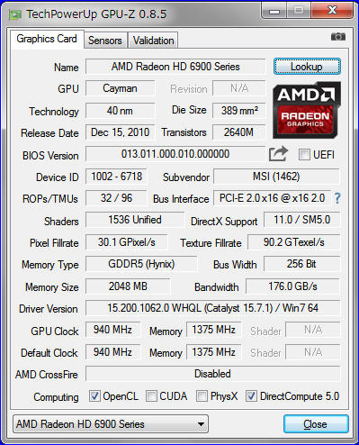 久しぶりにグラフィックカードを装備更新するので、いままで頑張ってくれたグラフィックカード情報をラストランです。 ![]() 2018年05月12日(土) GPU-Zのバージョンもメジャーバージョンアップしていたのですね。1.x系統から2.x系統に進化していました。 2016年11月23日(水) GPU-Zのバージョンも久しぶりに確認したら0.8.5から1.12.0まで進化していました。 2015年09月13日(日) 久しぶりに現在のグラフィックカードの情報更新です。Radeon HD6970ですね。 2010年10月19日(火) 数年ぶりに投入された新グラフィックカードRadeon HD5770の情報を追加です。 2010年06月03日(木) GPU-Zソフトウェアのバージョンがアップしました。モノリスの情報も追加です。 2010年05月16日(日) グラフィックスカードの素性を調べるのに役立ちます。結構マニアックな情報まで載っているので便利です。 |
