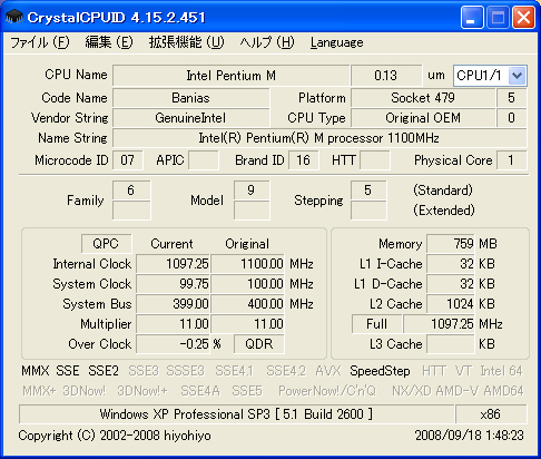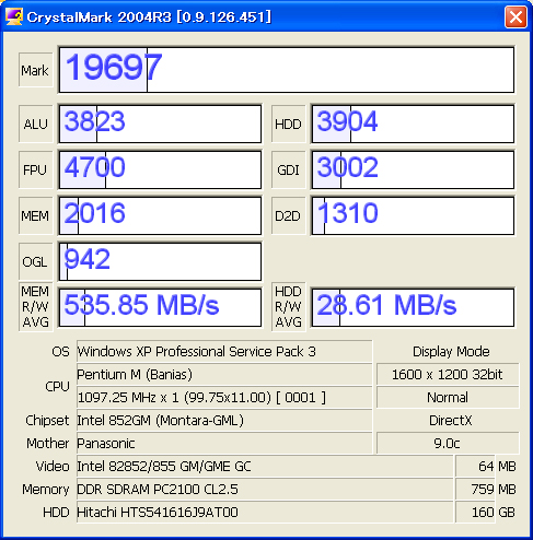 ![]() ![]() ![]() ![]() ------------------------------------------------------------ ブロードバンドスピードテスト 通信速度測定結果 http://www.bspeedtest.jp/ v3.0.0 測定時刻 2009/01/24 05:19:57 回線種類/線路長/OS:光ファイバ/-/Windows XP/東京都 サービス/ISP:その他光ファイバ/WAKWAK サーバ1[N] 31.0Mbps サーバ2[S] 34.1Mbps 下り受信速度: 34Mbps(34.1Mbps,4.26MByte/s) 上り送信速度: 14Mbps(14.0Mbps,1.7MByte/s) 診断コメント: その他光ファイバの下り平均速度は21Mbpsなので、 あなたの速度は速い方です!(下位から80%tile) ------------------------------------------------------------ 2010年01月22日(金) ![]() デスクトップパソコンのモニターは、テレビと共用なのでリモコンの奪いならぬ、 ディスプレイの奪い合いになります。なので、ゆっくりネットをしたり、ホームページ 更新をするためにこのノートパソコンも現役でバリバリ使ってます。 2009年09月17日(水) 実家のインターネット回線が遅くなっている ようなので、僕の所はどうかなぁと通信速度をテストしてみました。 下り 28.5 Mbps、上り25.7 Mbpsも出ているので満足です。 2009年01月17日(土) 総合ベンチマークソフトのCrystalMark2004r3_0.9.126.451を使ってみました。 かなり詳しく情報が見られるので便利ですね。 2008年07月17日(木) なんか、本体が熱いんですよね〜。キーボードを 長時間さわっていると低温やけどを連想しちゃいます。 HDD温度は42°位です。なので、昨日からアイスノンを ノートパソコンの下に敷いてみました。温度が20°位まで 落ちた(笑)。大丈夫かいな...。 2008年06月13日(金) ハードディスクを交換してから、起動が速い! エラーで落ちない!今のところいいとこだらけです。 あとは、バッテリーの持ちや熱排出がどうなるかの 調査かな。 2008年06月05日(金) HDDが壊れてきた(TOSHIBA MK4025GASL)ので、 新しいHDD(Hitachi HTS541616J9AT00)と交換しました。 容量は40GB→160GBと大幅アップです。 2008年05月11日(日) Service Pack 3を早速インストールしました。特に問題も今のところなく、 快適に動作しています。 2008年05月02日(金) 画面視覚効果を切ったり、ハードディスクスワップをやめたり、色々足掻いて なんとか動作するようにまたなりました。 2008年04月22日(火) 時々ブルー画面になったり、作業中にフリーズして強制電源断をするはめになって きました。そろそろやばいかあもしれない。 2008年04月08日(火) 九州での学会発表の帰りに調子が悪くなってしまい。リカバリする羽目になりました。 データはほぼ外付けHDDに保管していたので問題なかったです。しかし、メールデータを バックアップした先がCドライブで、そのままリカバリするという大ポカミスをしちゃった せいで、古いメールは消えちゃいました。アドレス帳はちゃんと外部HDDにコピーしていたのにね。 はぁ〜。まあいいか。 2007年08月16日(木) XPのインターフェースに慣れちゃっていたんですね。元に戻しました。 最近家の中を無線LAN化したので、LANケーブルを一々挿したりしなくてよくなりました。 何より、移動が自由なのがいいですね。テーブルの上にパソコン置いてやっています。 前は、床に寝そべって背筋を鍛える状態でパソコンしていたこともあったなぁ。 2007年08月08日(水) やっぱり処理が重く感じるので視覚効果をクラッシックにして負荷を軽くし始めました。 2007年07月30日(月) 何とかノートだけでもなっちゃうもんですねぇ〜。 2007年07月26日(木) 17インチの液晶ディスプレイも売っちゃいました。 2007年07月21日(土) 寝室の鏡台にノートパソコンの置き場所を確保しました。プリンタもその隣の床へ。 結構様になっています。後は、17インチの液晶ディスプレイを売り払うか他で使うか 悩みどころです。 2007年07月17日(火) デスクトップパソコンが天寿を全うされたので自宅の主力機になりました。 2007年06月06日(水) 快調に動いてくれています。 |