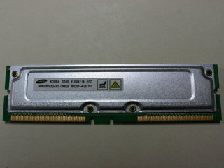 2009年10月01日(木)RDRAMメモリー Pentium4時代に一時期流行ったRDRAMメモリーです。 めちゃくちゃ高コストで結局DDR2に押されて消えてしまいました。 規格はPC800となり、バス幅 16 bit、動作周波数は 400 MHzで転送速度 1600 MB/s です。 |